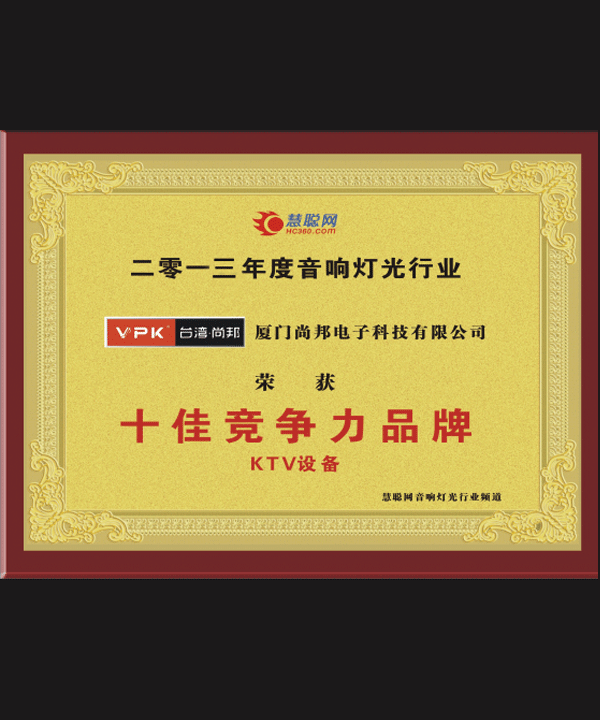2013年“十大竞争力品牌”牌匾