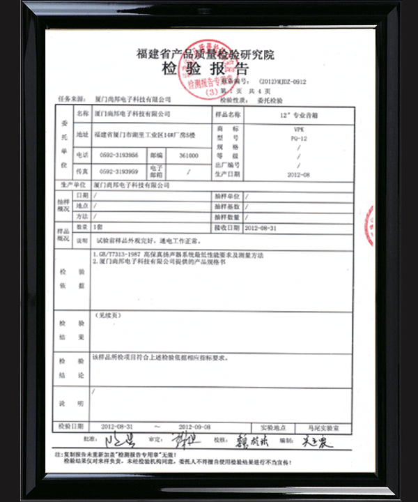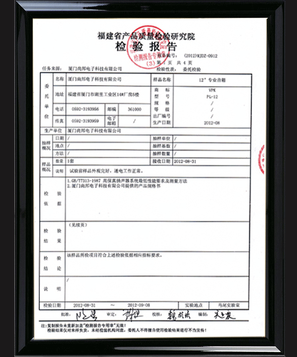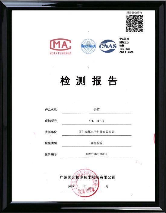 中国认可国际互认VPK音箱HF-12检测报告