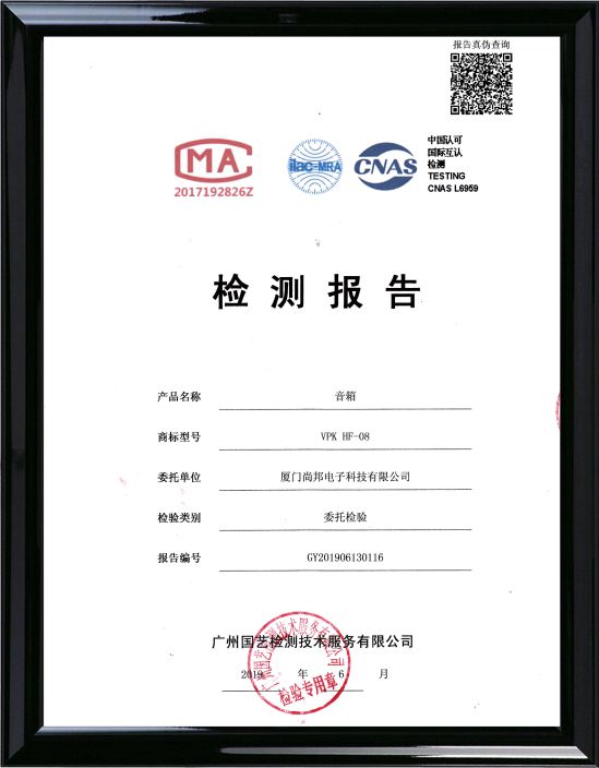 中国认可国际互认VPK音箱HF-08检测报告