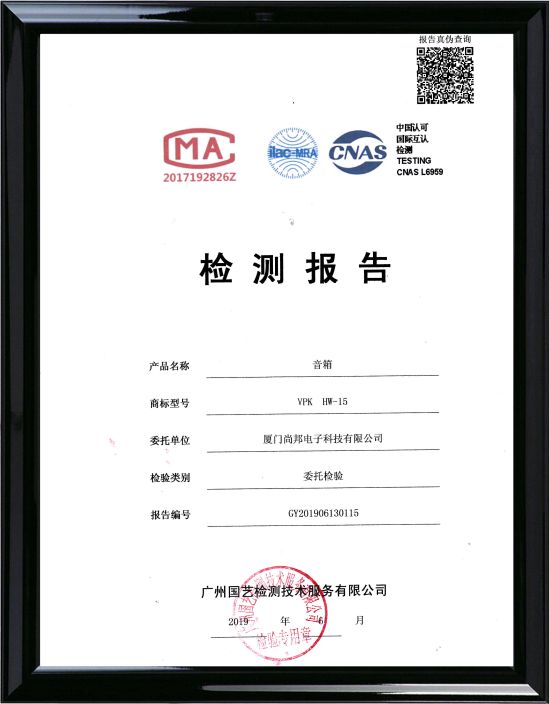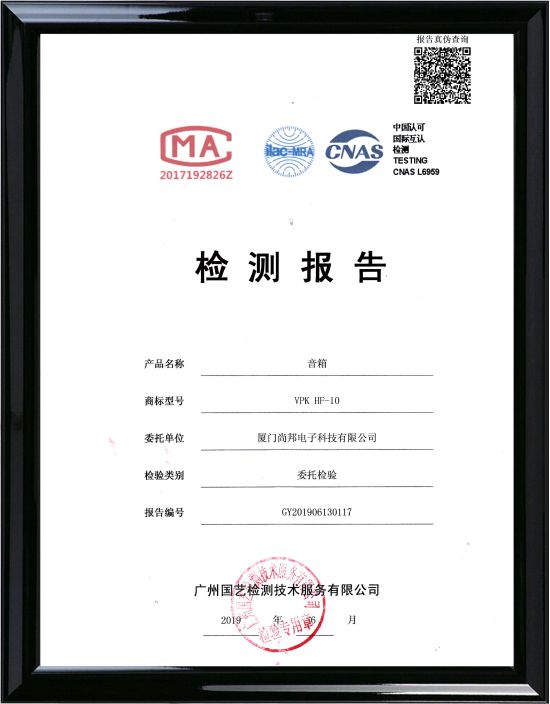 中国认可国际互认VPK音箱HW-10检测报告