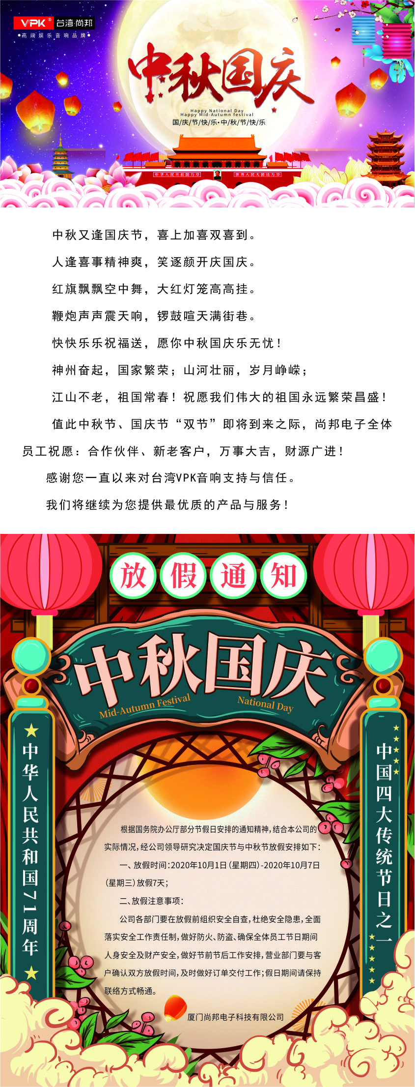 中秋国庆放假通知——厦门尚邦电子科技有限公司